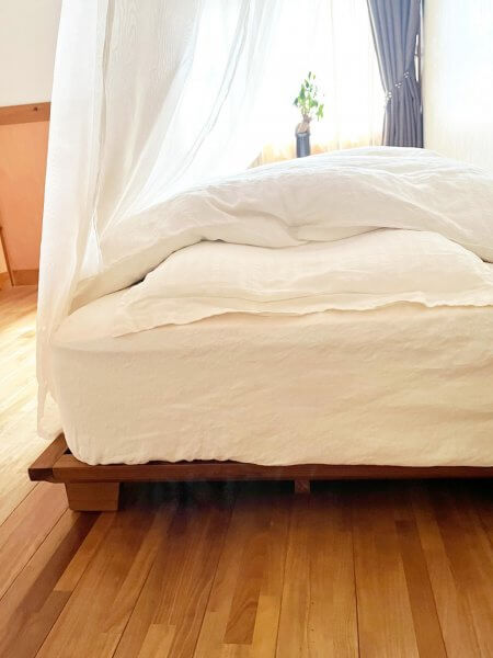 見えない部分にも同じ素材を使用したベッドはナチュラルでありながら、品のある佇まい✨